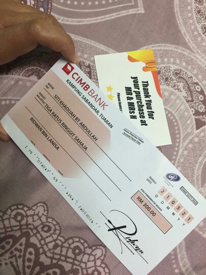 Cimb mock cheque thick and hard artpaper gloss lamination 80mm x170mm waterproof ink how to order : Maybank, cimb, bank islam, rhb bank, alliance bank, hsbc.